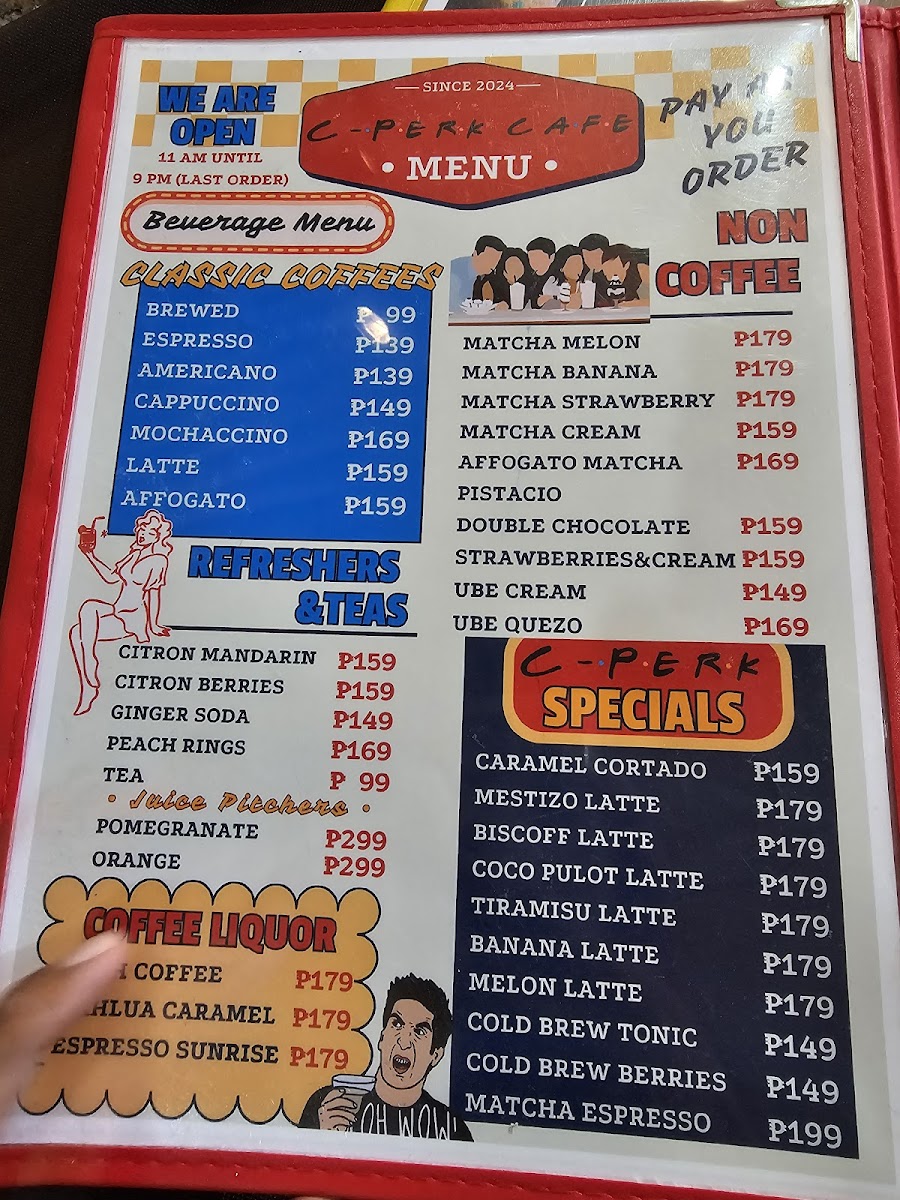 C-PERK CAFE in Oton, Iloilo is a cozy, spacious coffee shop that delights both coffee lovers and food enthusiasts. Inspired by the iconic TV show F.R.I.E.N.D.S, it offers a charming ambiance perfect for studying or hanging out with friends. The menu stands out with its crowd-favorite Fajitas, praised for their generous serving and flavorful taste, making them a highlight of any visit. Coffee aficionados will appreciate the Biscoff Latte, a rich, smooth brew hailed as one of the best lattes in the area, blending perfectly with the café’s inviting atmosphere.